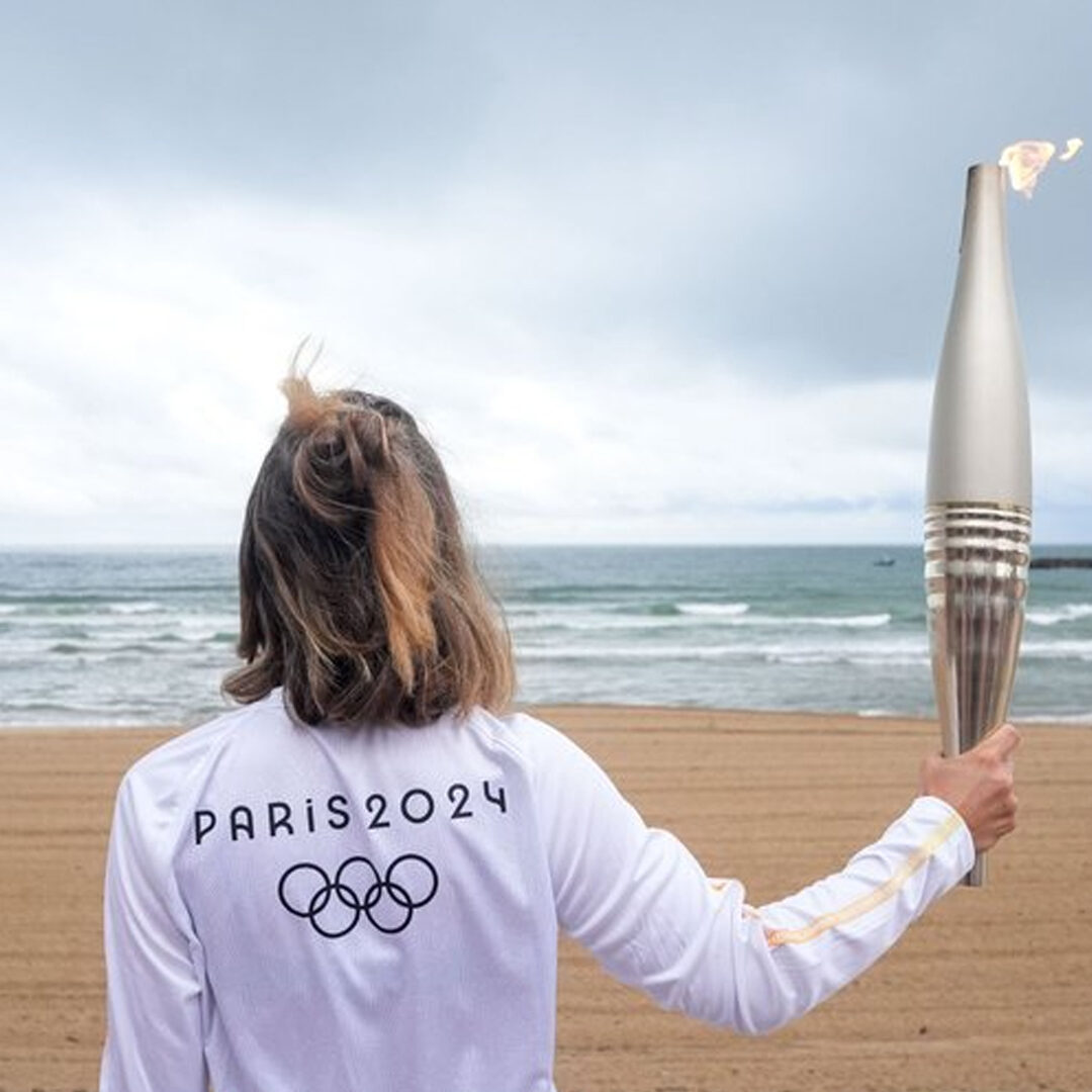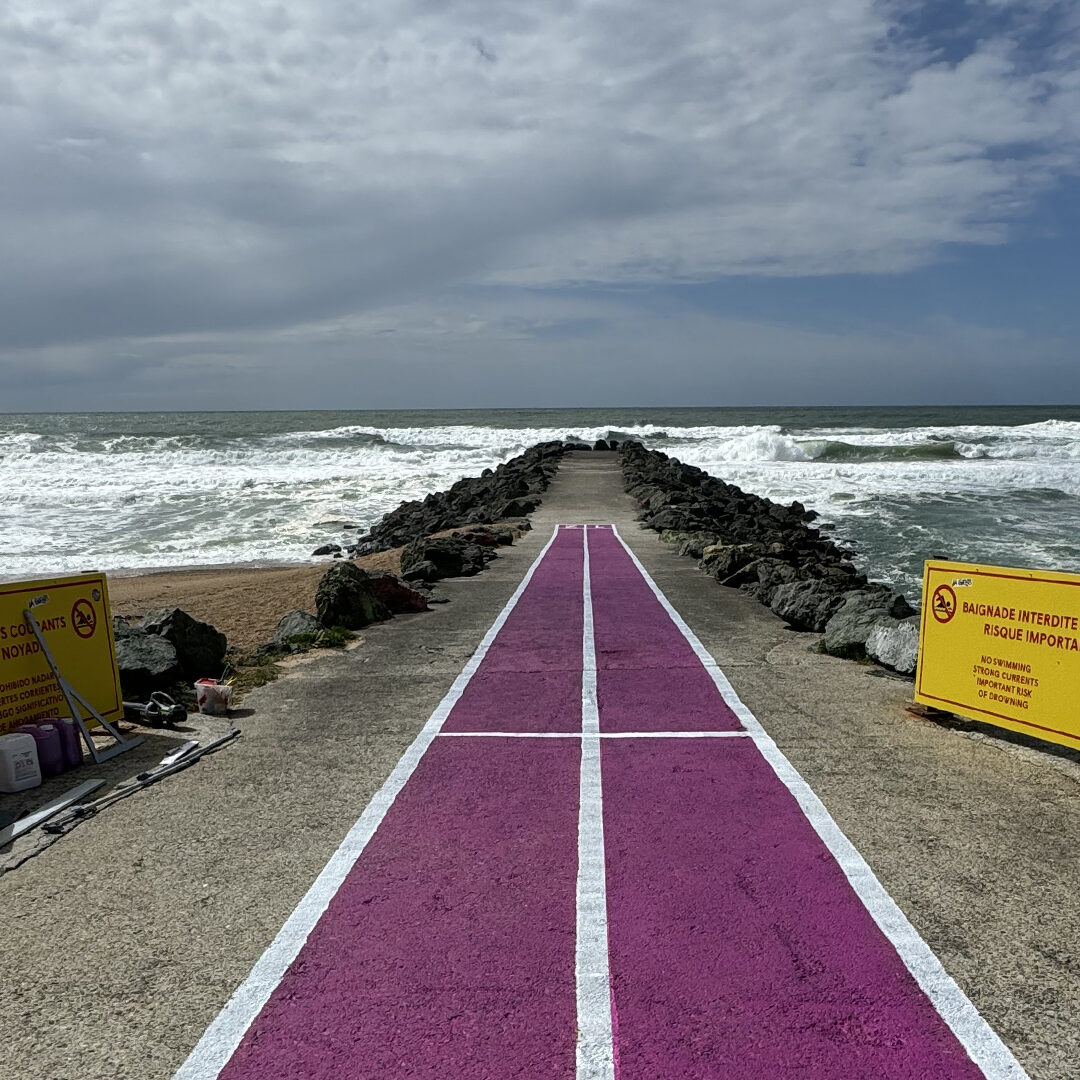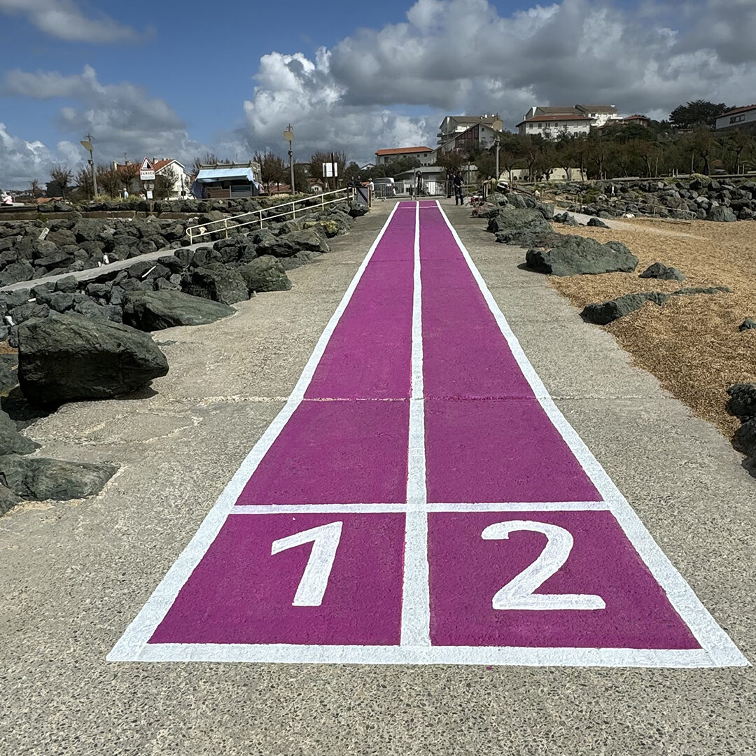 Pour le passage de la flamme olympique à Biarritz et Anglet le lundi 20 mai, nous avons habillé la digue de la plage des Sables d’Or de couloirs d’athlétisme aux couleurs des J.O. de Paris 2024 (voir le parcours).
