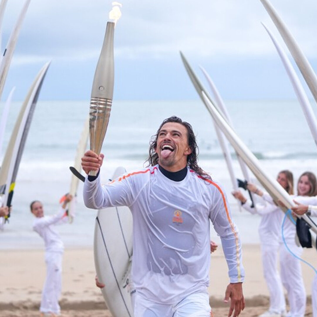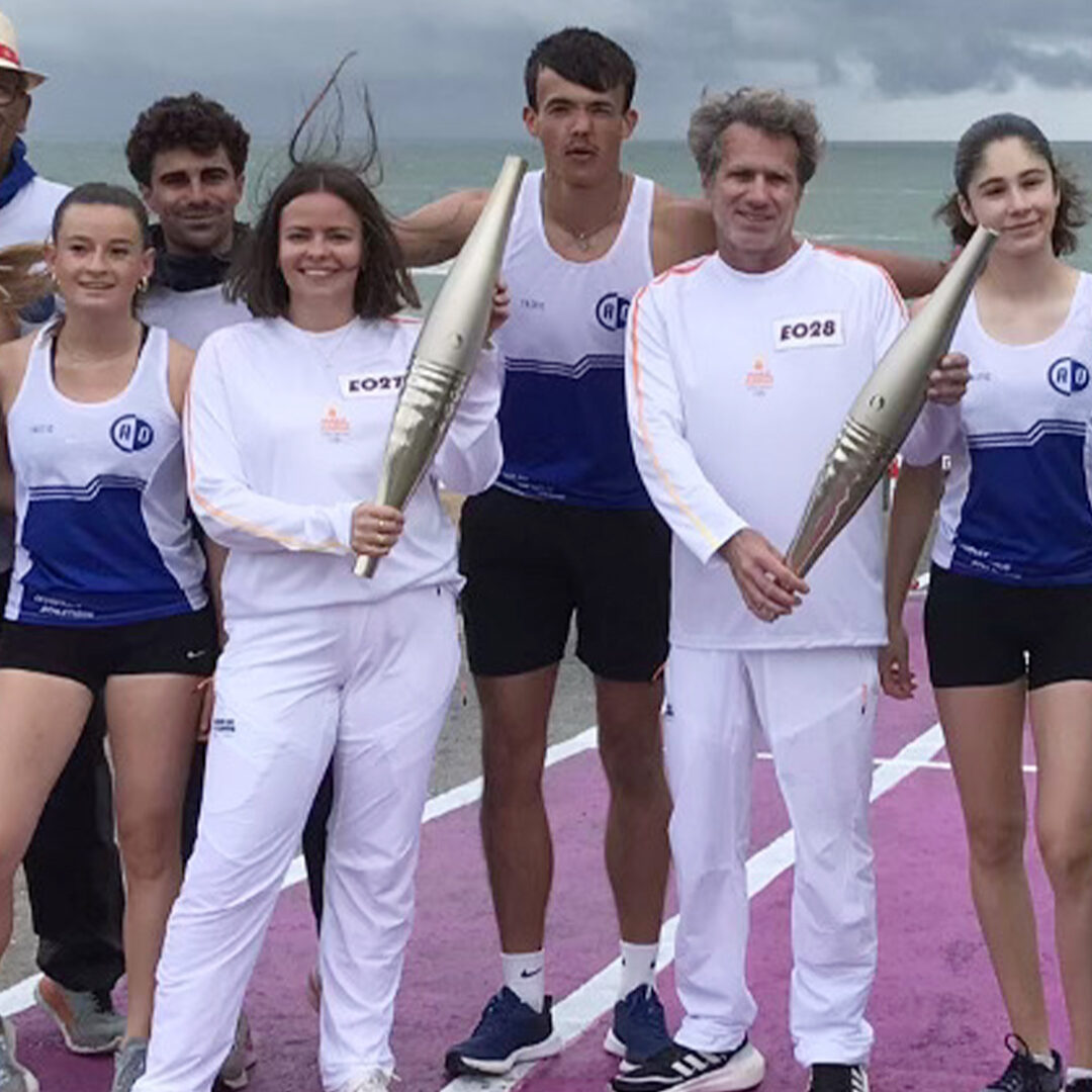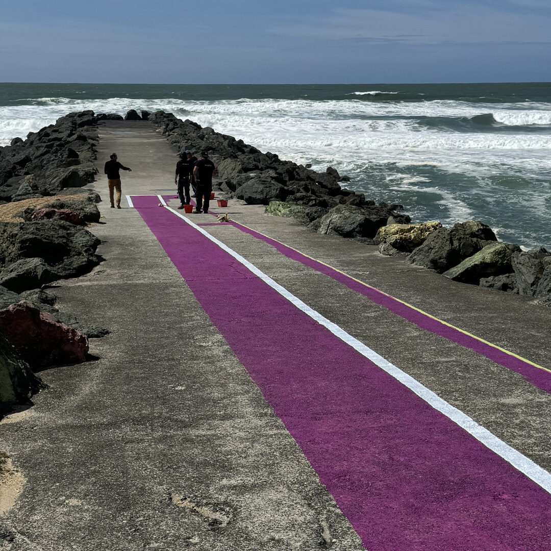 Pour le passage de la flamme olympique à Biarritz et Anglet le lundi 20 mai, nous avons habillé la digue de la plage des Sables d’Or de couloirs d’athlétisme aux couleurs des J.O. de Paris 2024 (voir le parcours).