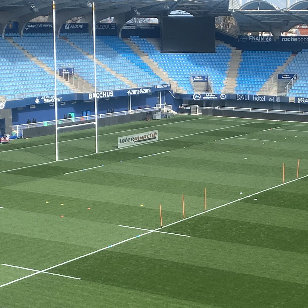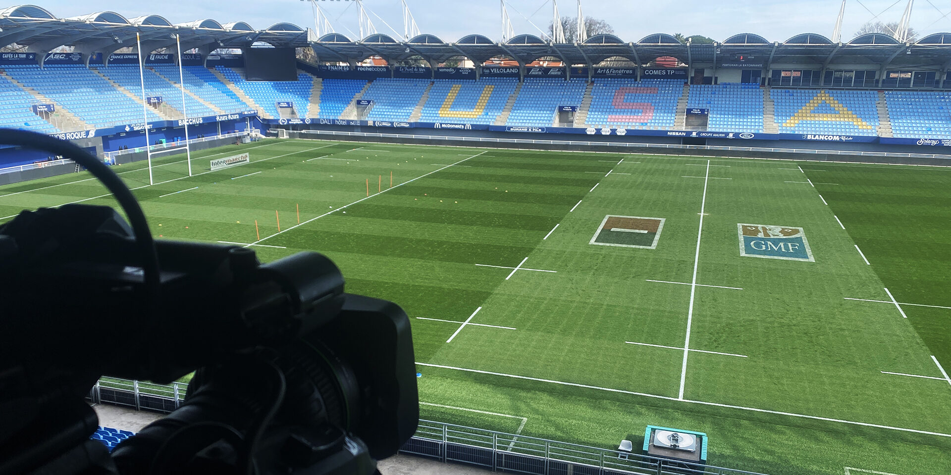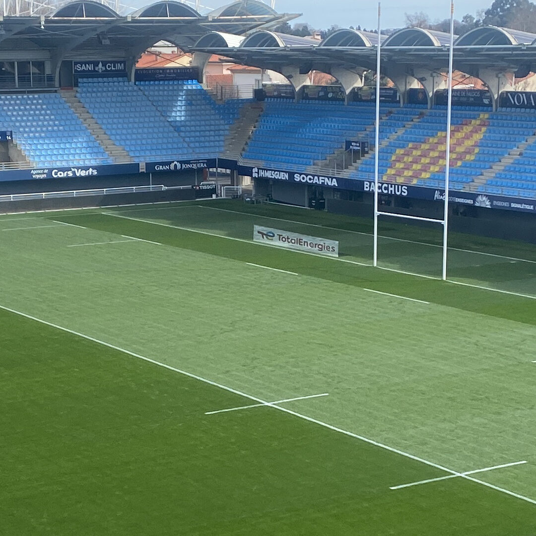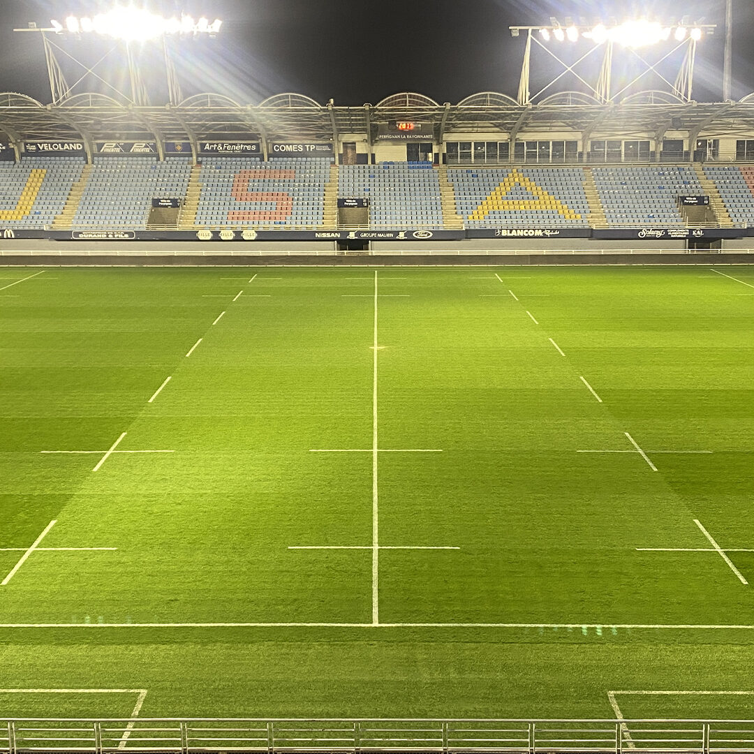 Préalablement, l’équipe Trace Sports a réalisé les 4 logos habituels des partenaires du tournois sur le superbe gazon du stade Aime-Giral, avec une peinture maltée pour faciliter l’effacement, sans aucune difficulté grâce à la chaleureuse collaboration de l’équipe des jardiniers et de son stadium manager. Belle collaboration qui s’est étendue après le match pour un effacement des logos sans accroc afin de révéler à la pelouse du stade son éclat naturel.