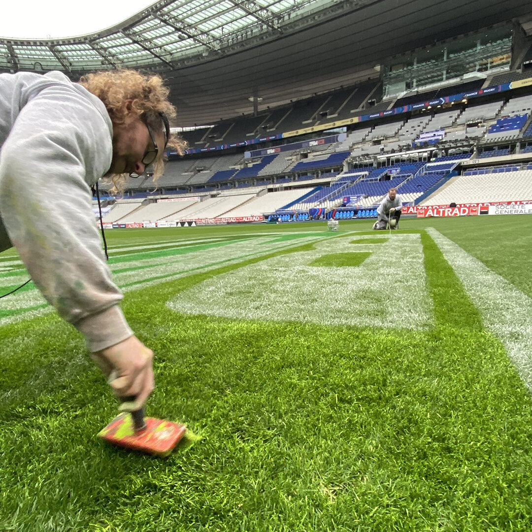 Enfin, le 14 mars, le Tournoi se conclura en apothéose avec le traditionnel Crunch, disputé cette année au Stade de France. Un choc face au XV de la Rose en prime time pour une potentielle finale du Tournoi. Les Bleus sont en confiance après deux succès convaincants. Chez nous aussi, avec quatre peintres, l’équipe Trace Sports, presque complète, est confiante pour réaliser six logos sur chaque terrain du Tournoi sur le sol français, en route vers le grand Chelem !