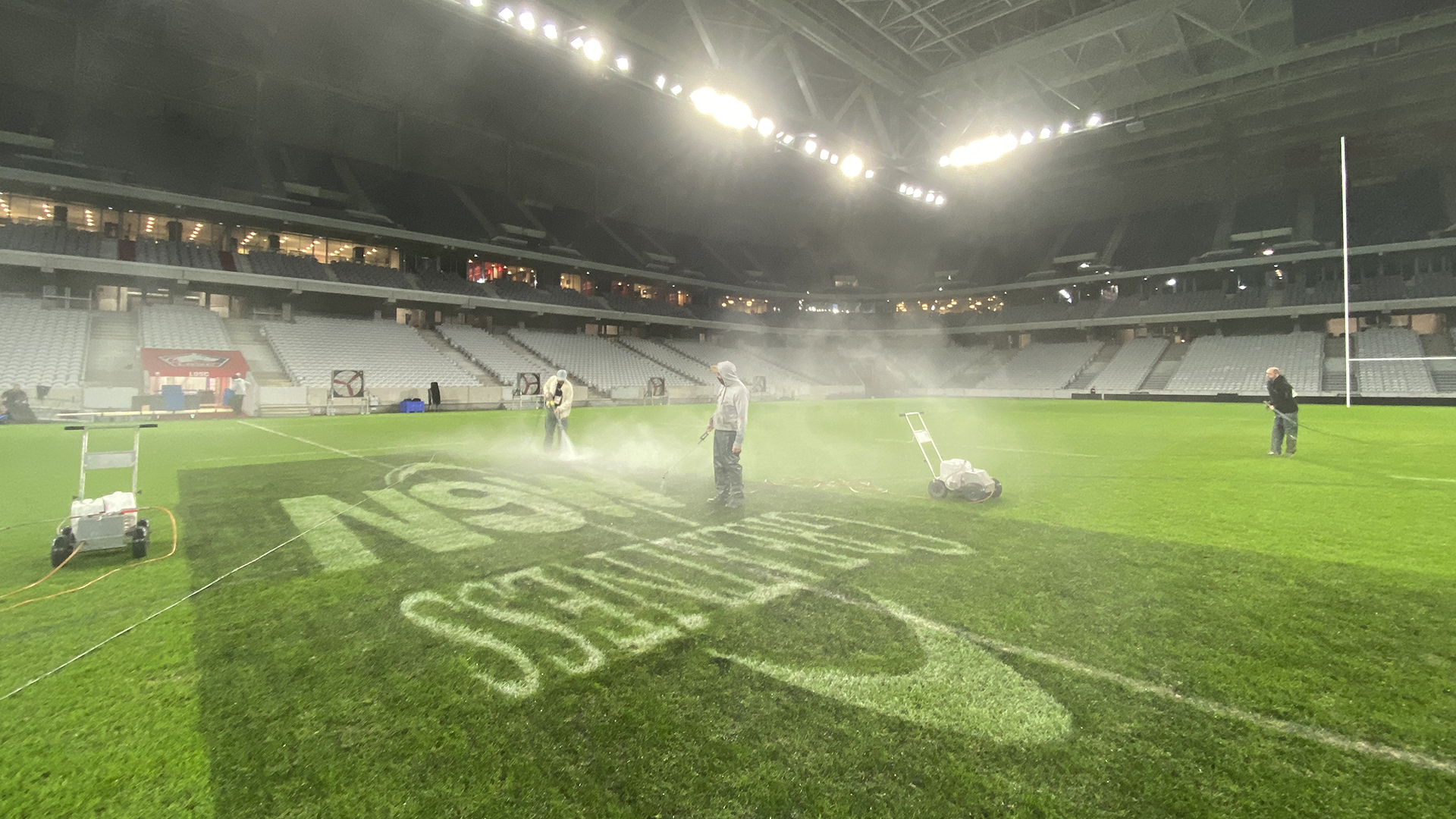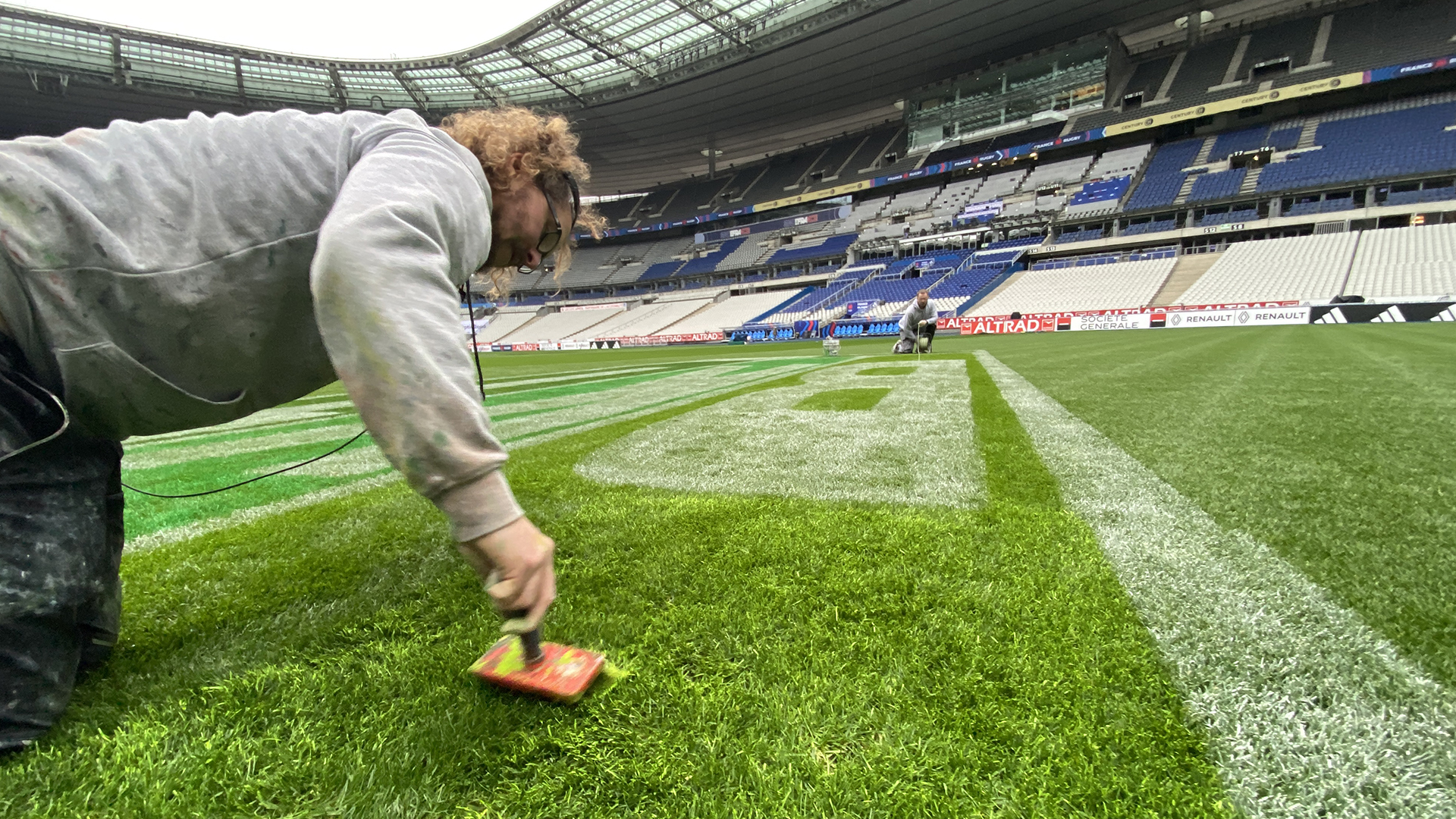 Enfin, le 14 mars, le Tournoi se conclura en apothéose avec le traditionnel Crunch, disputé cette année au Stade de France. Un choc face au XV de la Rose en prime time pour une potentielle finale du Tournoi. Les Bleus sont en confiance après deux succès convaincants. Chez nous aussi, avec quatre peintres, l’équipe Trace Sports, presque complète, est confiante pour réaliser six logos sur chaque terrain du Tournoi sur le sol français, en route vers le grand Chelem !