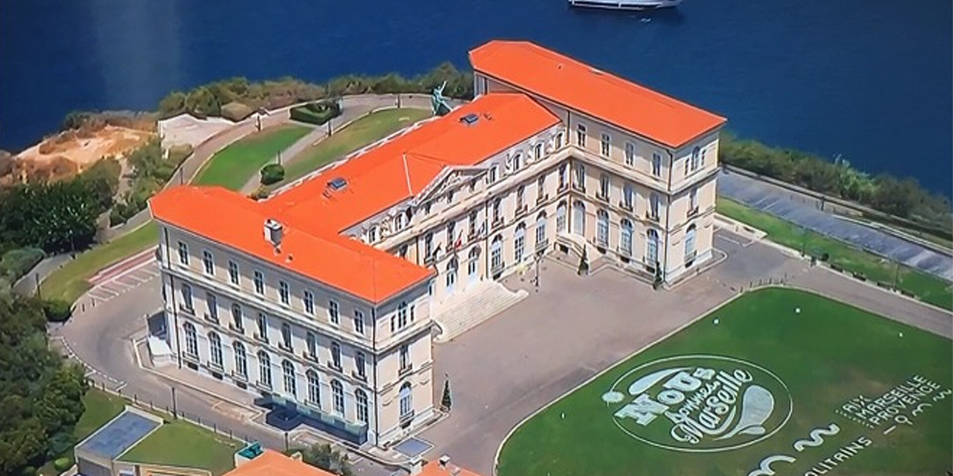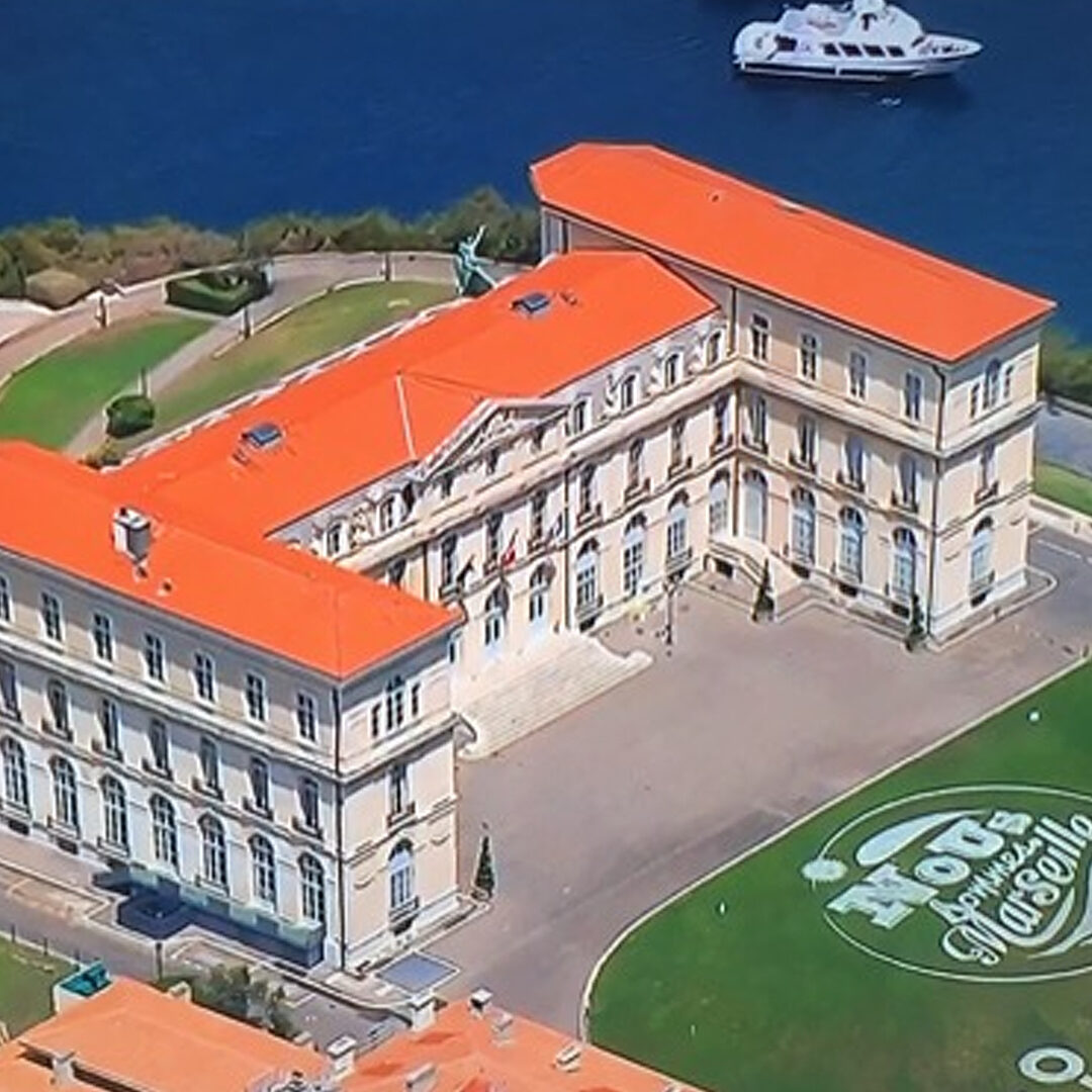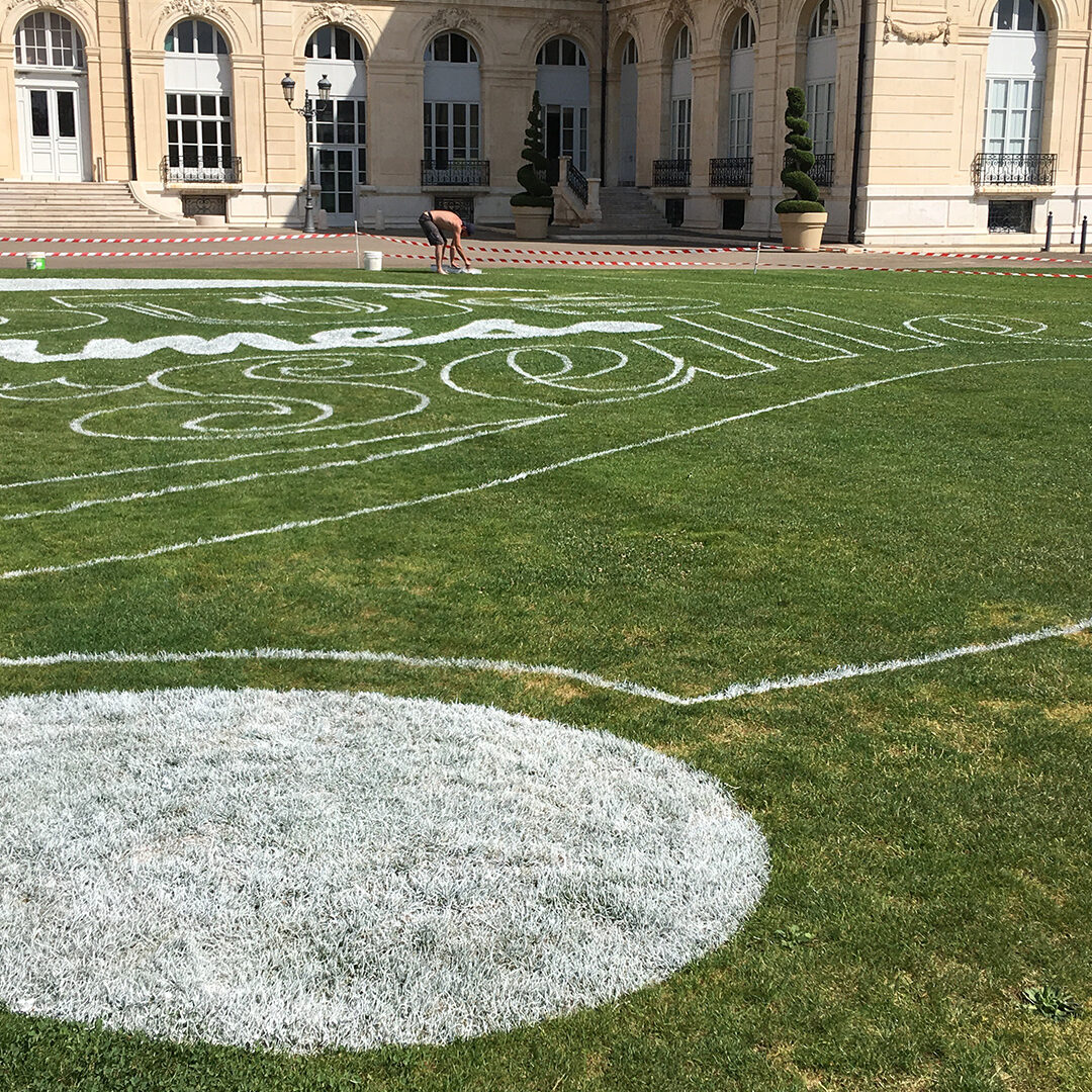 Nous avons habillé la pelouse du Palais du Pharo, magnifique momument marseillais surplombant le Vieux Port. La réalisation de ce marquage a nécessité pas moins de 120 litres de peinture répartis sur les 1000 m² de surface totale. Pour une plus grande précision le tracé a été suivi par GPS, 4 techniciens et un robot ont œuvré pendant 8h pour la réalisation de cette opération.